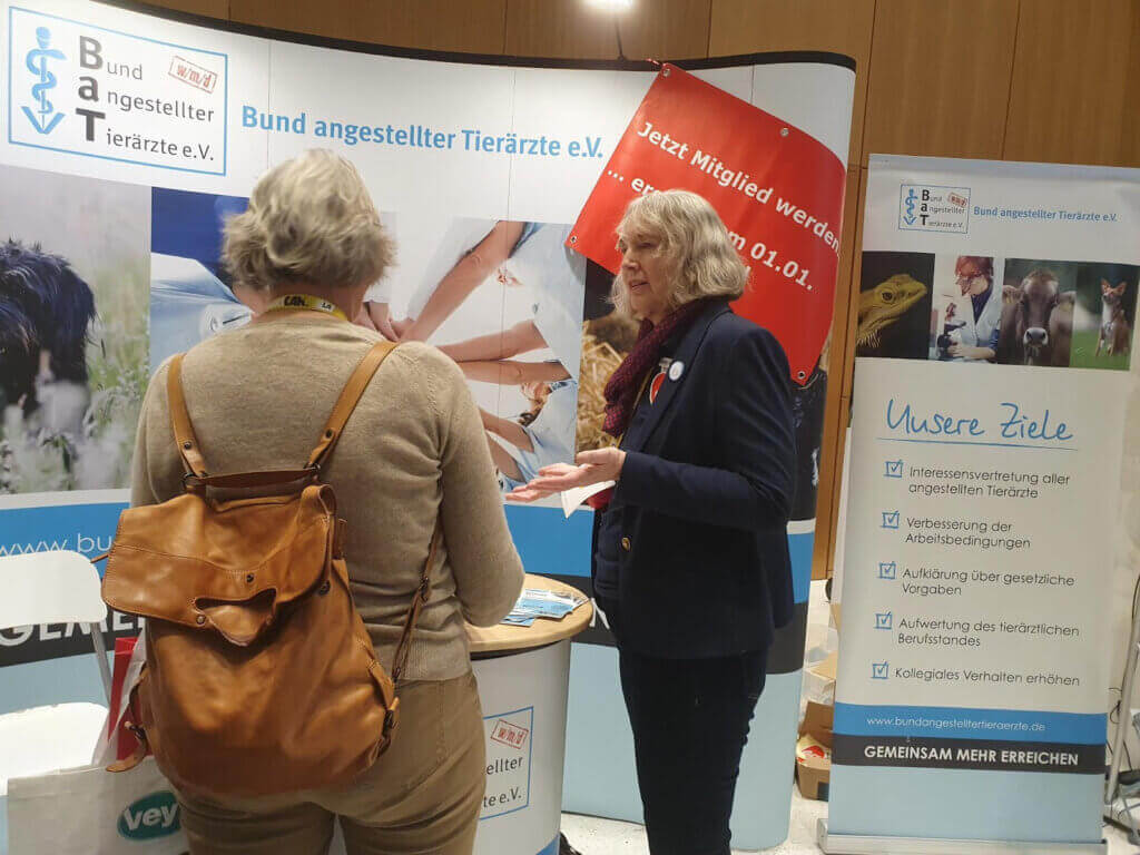 Für Gesprächsstoff am BaT-Stand sorgte die aktuell laufende BaT-Studie zu Arbeitsbedingungen und Arbeitszufriedenheit angestellter Tierärzt:innen.